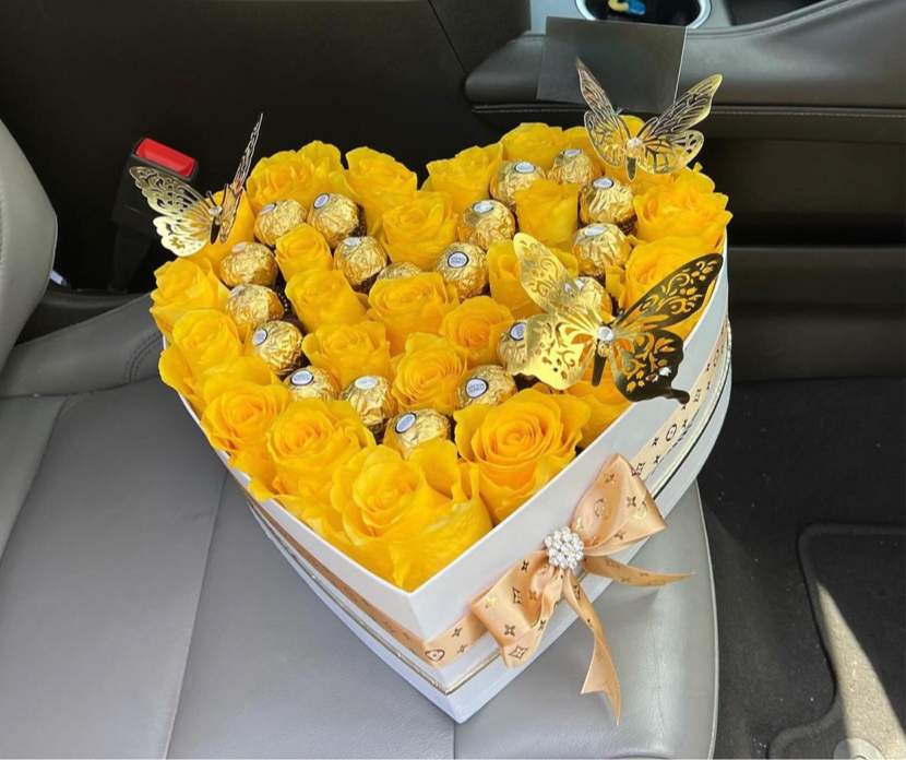 Incluye mix de rosas y ferrero rocher