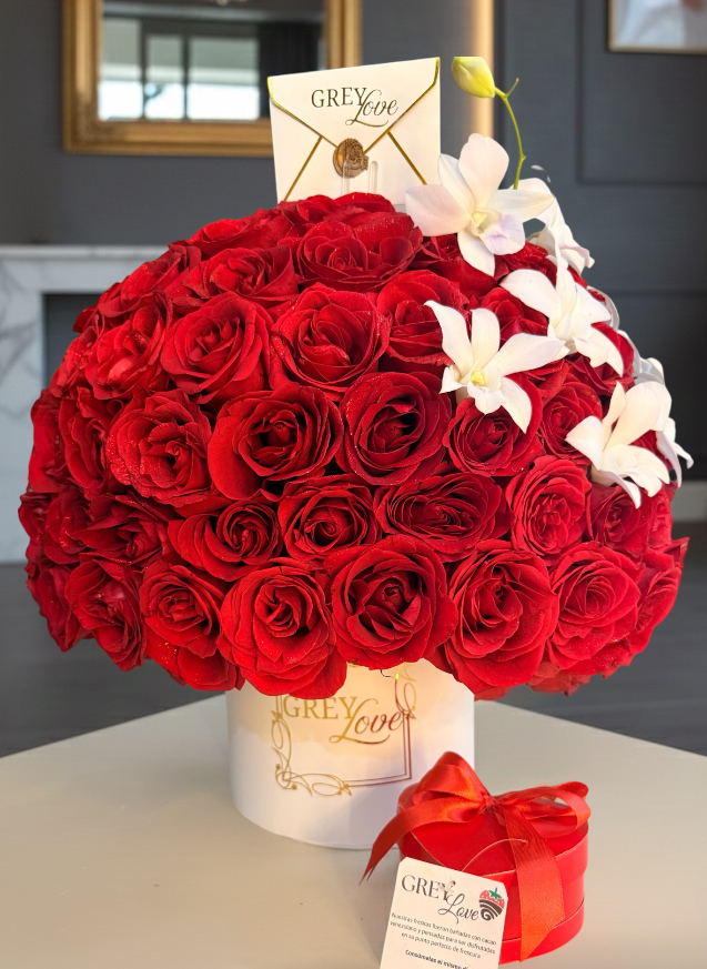 En GreyLove trabajamos con rosas y flores seleccionadas, fresas cubiertas y chocolates de excelente calidad, cuidando cada detalle para que tu regalo sea impecable, elegante y delicioso.