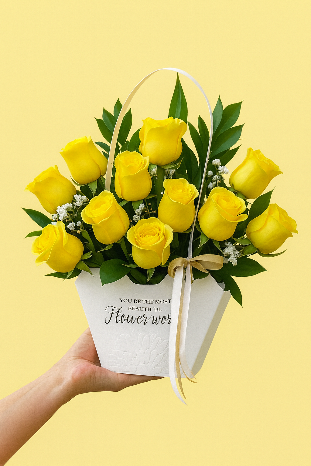 Incluye 10 a 11 rosas, tarjeta de dedicatoria y follaje
