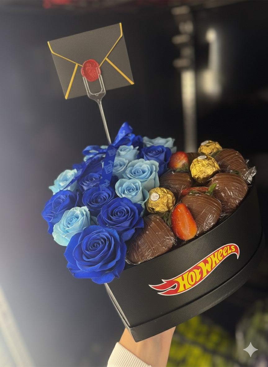 Incluye 6 fresas y 3 chocolates ferrero rocher
