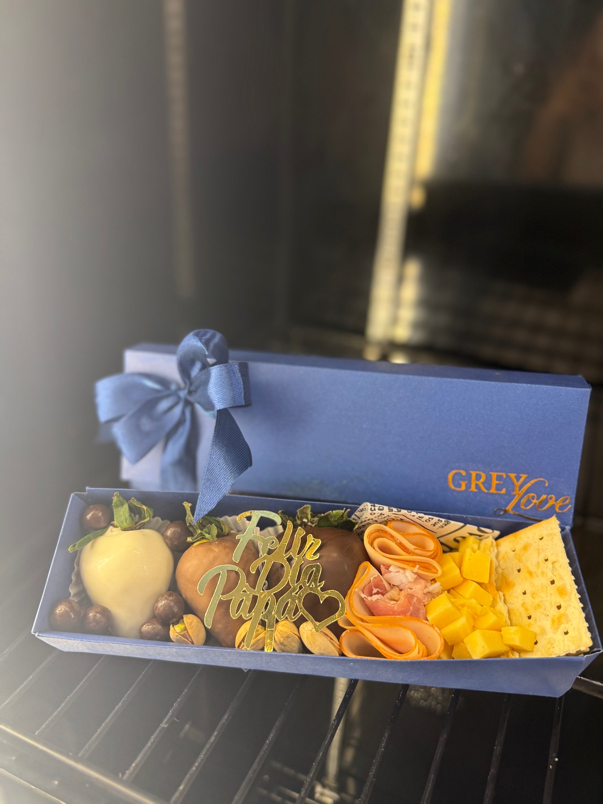 3 fresas, frutos cubiertos de chocolate, pistacho y mix de charcutería